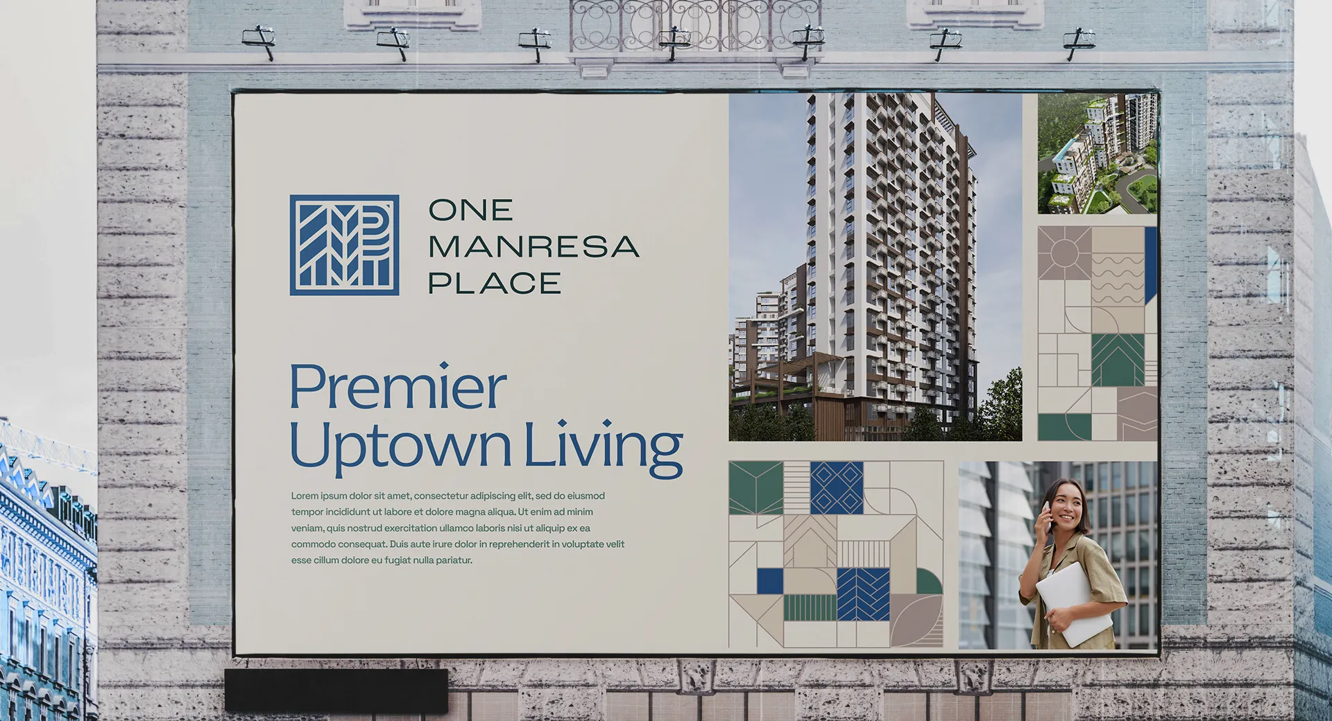 One Manresa Place stands as the first of its kind— a premier residence within a vibrant university town where opportunities, conveniences, and life pursuits come first and come together in one place. Much like this, we expressed Premier Uptown Living through a grid design system that connects nature, culture, and progress in the logo and patterns, using abstract icons inspired by Cagayan de Oro’s rich landscape, people, and traditions.