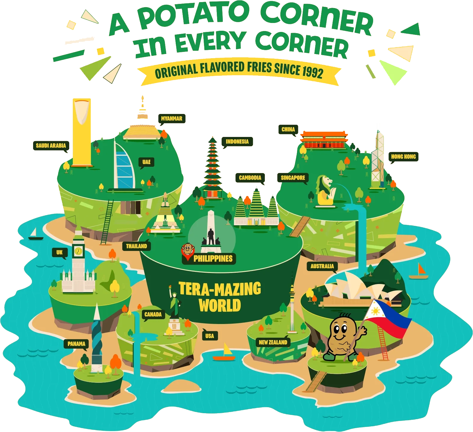 With its 1,500 stores across the globe, Potato Corner serves the World’s Best Flavored Fries, satisfying potato cravings and flavoring every moment.