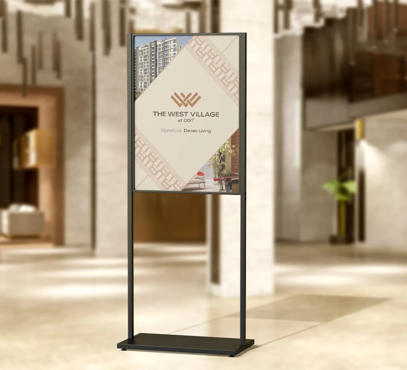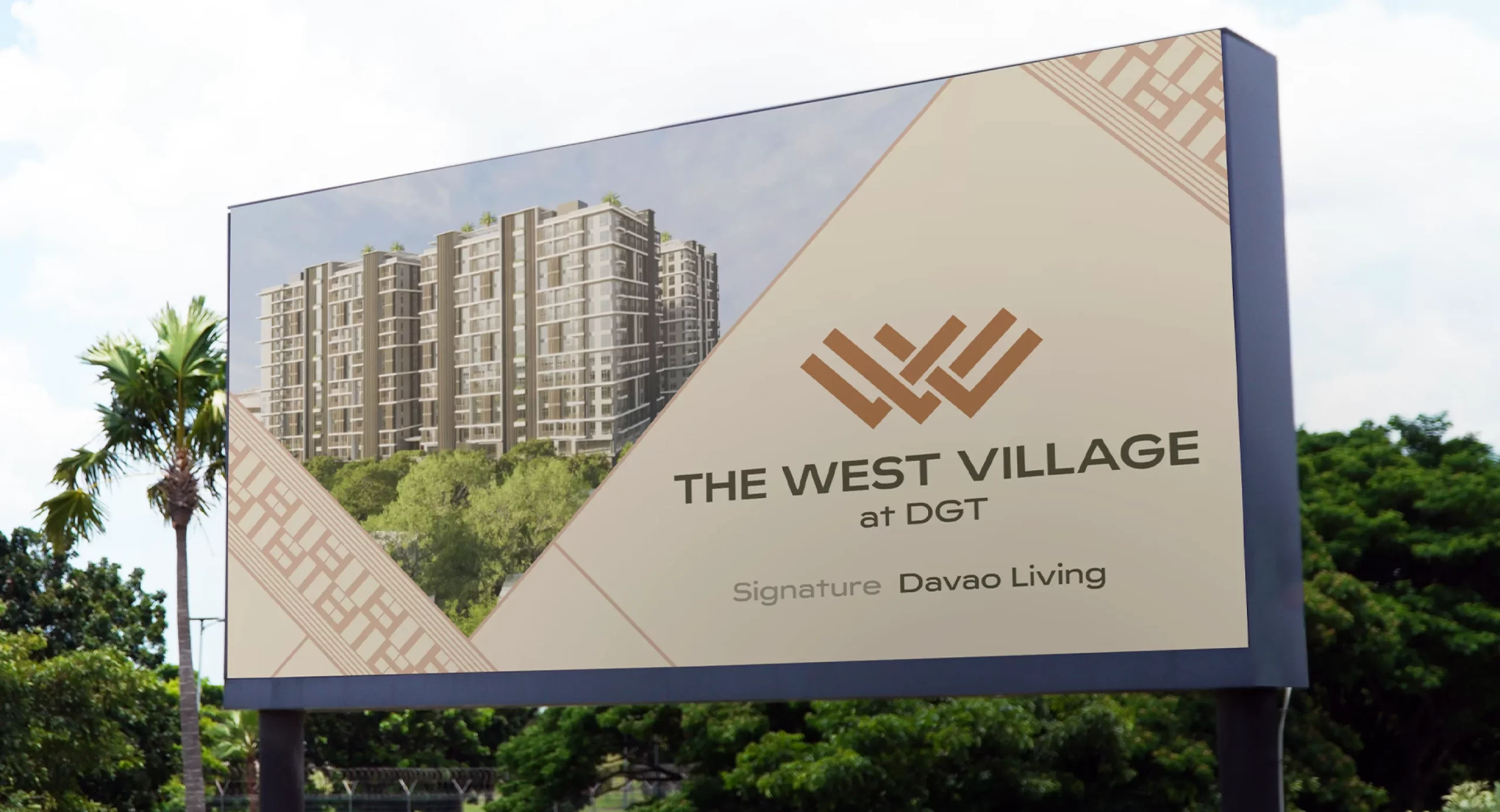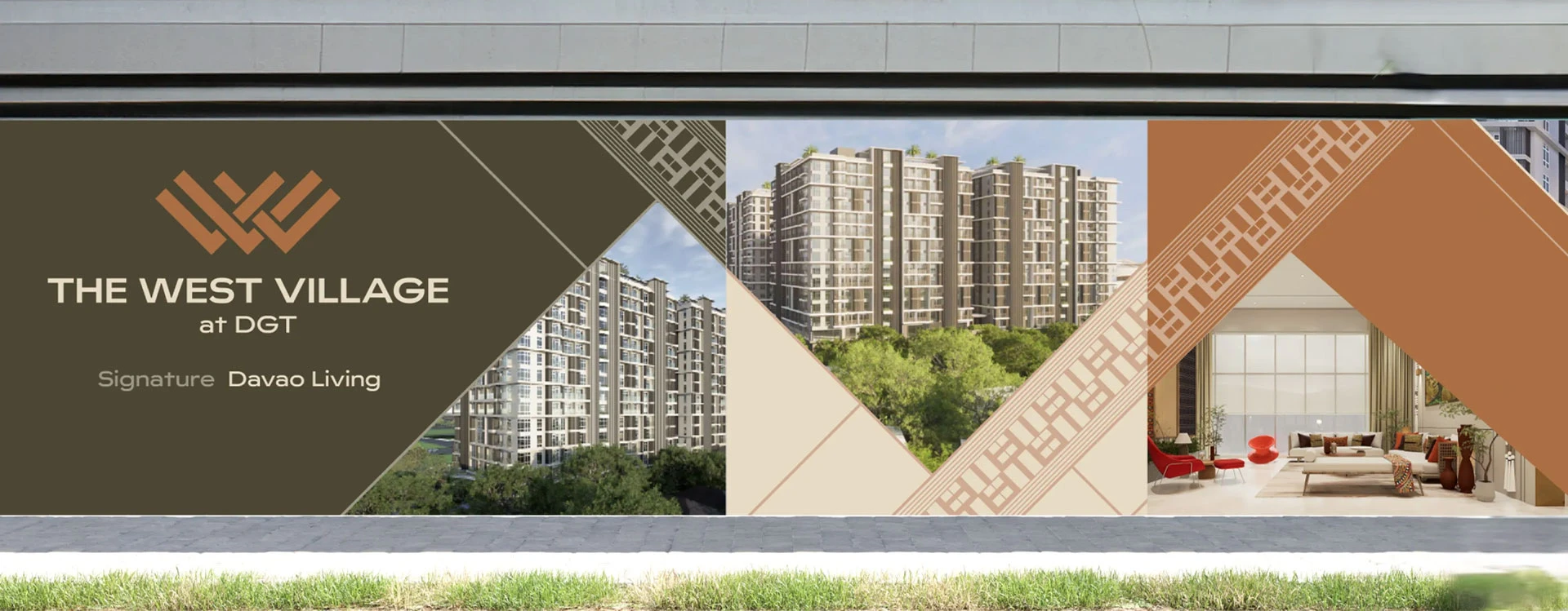 We envisioned The West Village at DGT as a modern tapestry woven from Davao’s rich heritage, diverse cultures, and elegant way of life—expressed in vertical and contemporary form through space, design, and living. Weaving this connection into the identity, we utilized the concept of threads for the logo and translated elements of its facade into patterns, colors, and a story that proudly showcase the refined craftsmanship and amazing lifestyle that are signature to Davao.